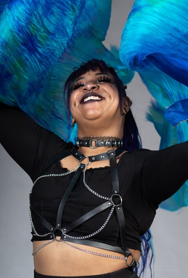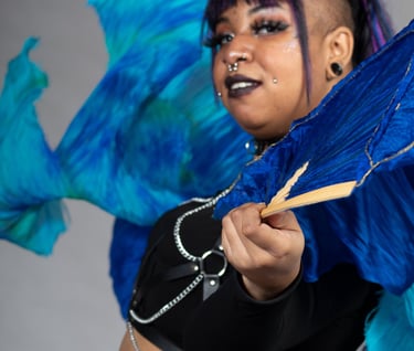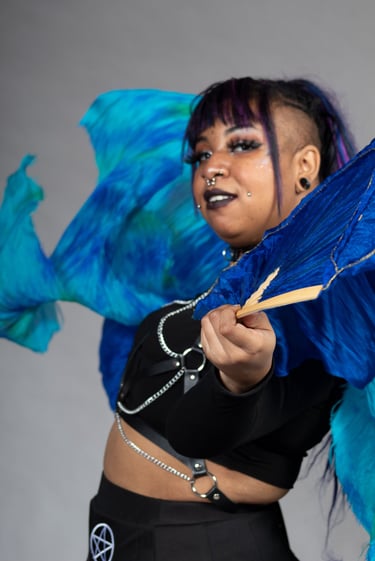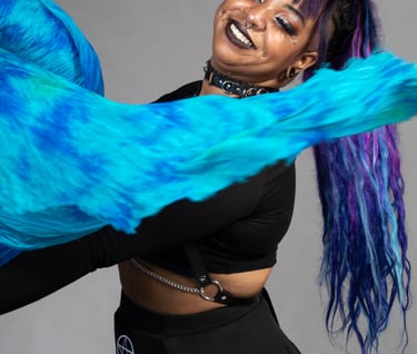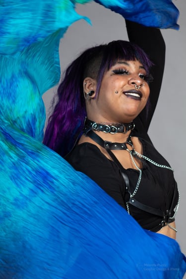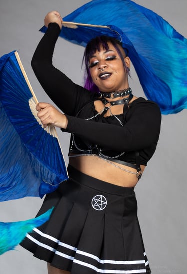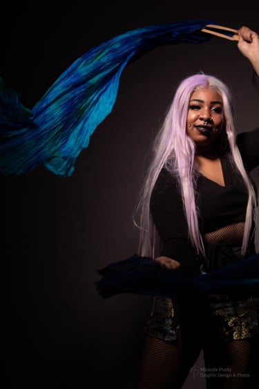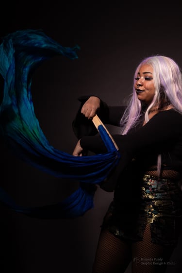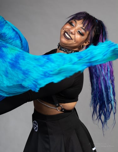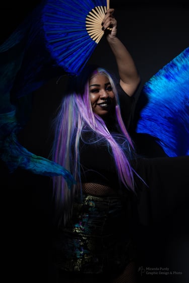 Featured in this set (and many more to follow), is TK, a remarkably talented flow artist with experience with many different props. This photoshoot primarily focused on portraits and silk fan stills, but also is photographed using leviwand and poi in later sessions.