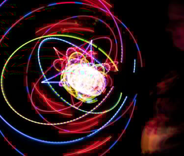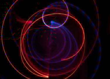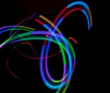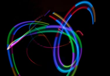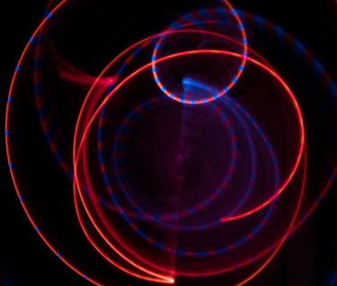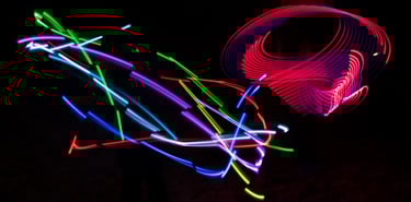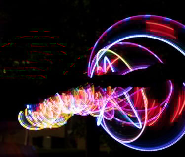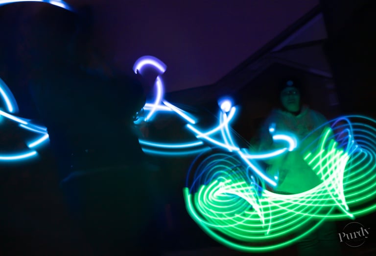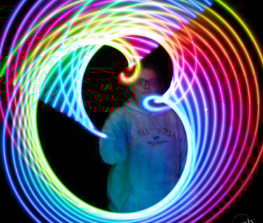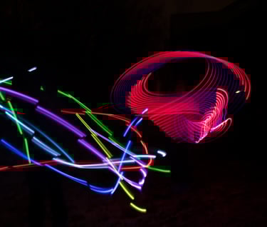 We began our light journey back in 2020 with some cheap flow toys and began learning how to use them and photograph them in the backyard of my apartment complex. These images were the first major step in our effort to capture interesting light painting images. In this set of images, we used an orbit toy and a basic levitation wand.